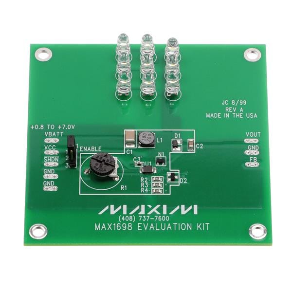 Analog Devices MAX1698EVKIT ຊຸດປະເມີນຜົນ Eval Kit MAX1698 (ປະສິດທິພາບສູງ Step-U | EMIN.COM.LA
