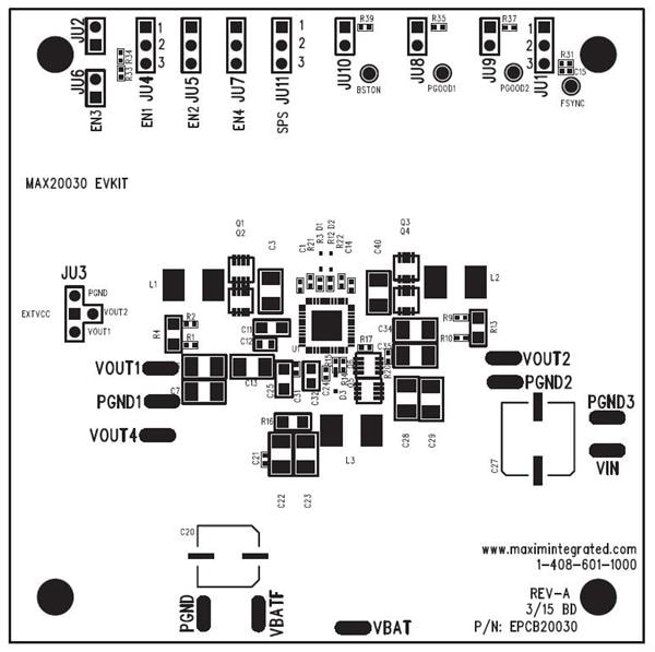 Analog Devices MAX20030EVKIT# ຊຸດປະເມີນ ຊຸດປະເມີນສໍາລັບ MAX20030 - 2MHz, 36V, | EMIN.COM.LA