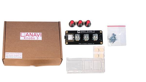 ANAVI Technology CS-ANAVI-K3 ບອດພັດທະນາ & ຊຸດ - ARM ອຸປະກອນປ້ອນຂໍ້ມູນມະນຸດທີ່ມີ rotary encoders 3 ອັນທີ່ສາມາດກົດໄດ້. ມີ USB-C, RP2040 MCU, ແລະຊ່ອງ IC. ລວມທັງກັບກອງ, ນຸດ, ແລະກະດູກຫົວ.