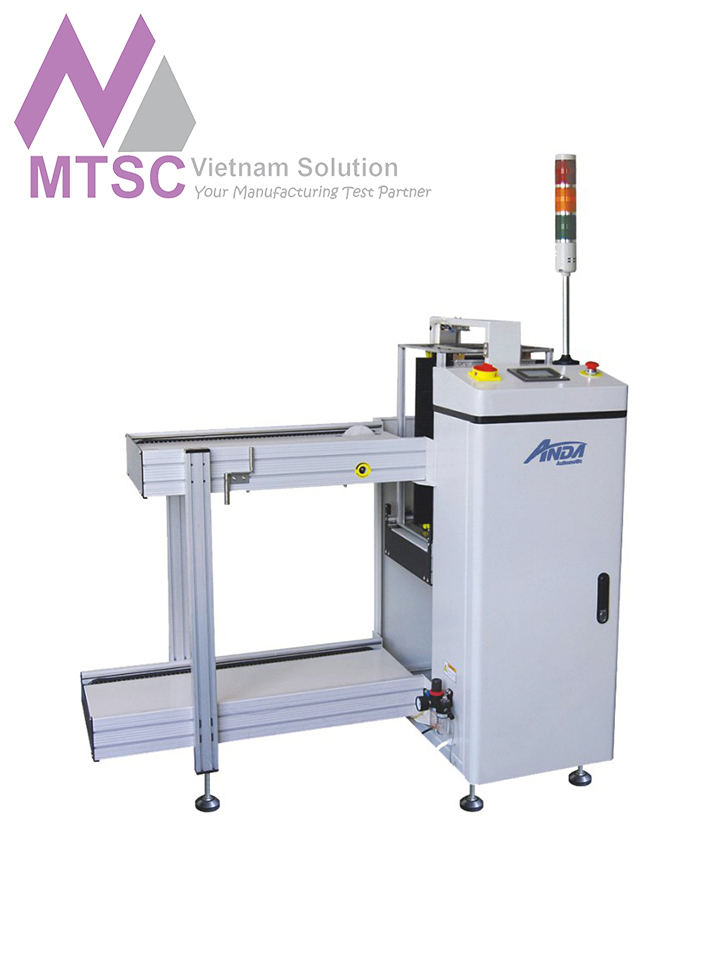 ANDA SMEMA compatible loader feeds PCBs into the Process Line from Stacks or Magazines. 460 x 535mm maximum PCB or pallet dimensions. Touchscreen control. Two models to choose from.
