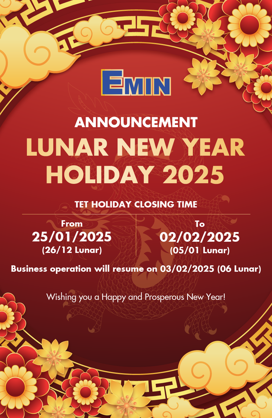 Joining the joyful atmosphere of the last days of the year, EMIN GROUP would like to announce to all customers and partners the 2025 Lunar New Year holiday schedule as follows: