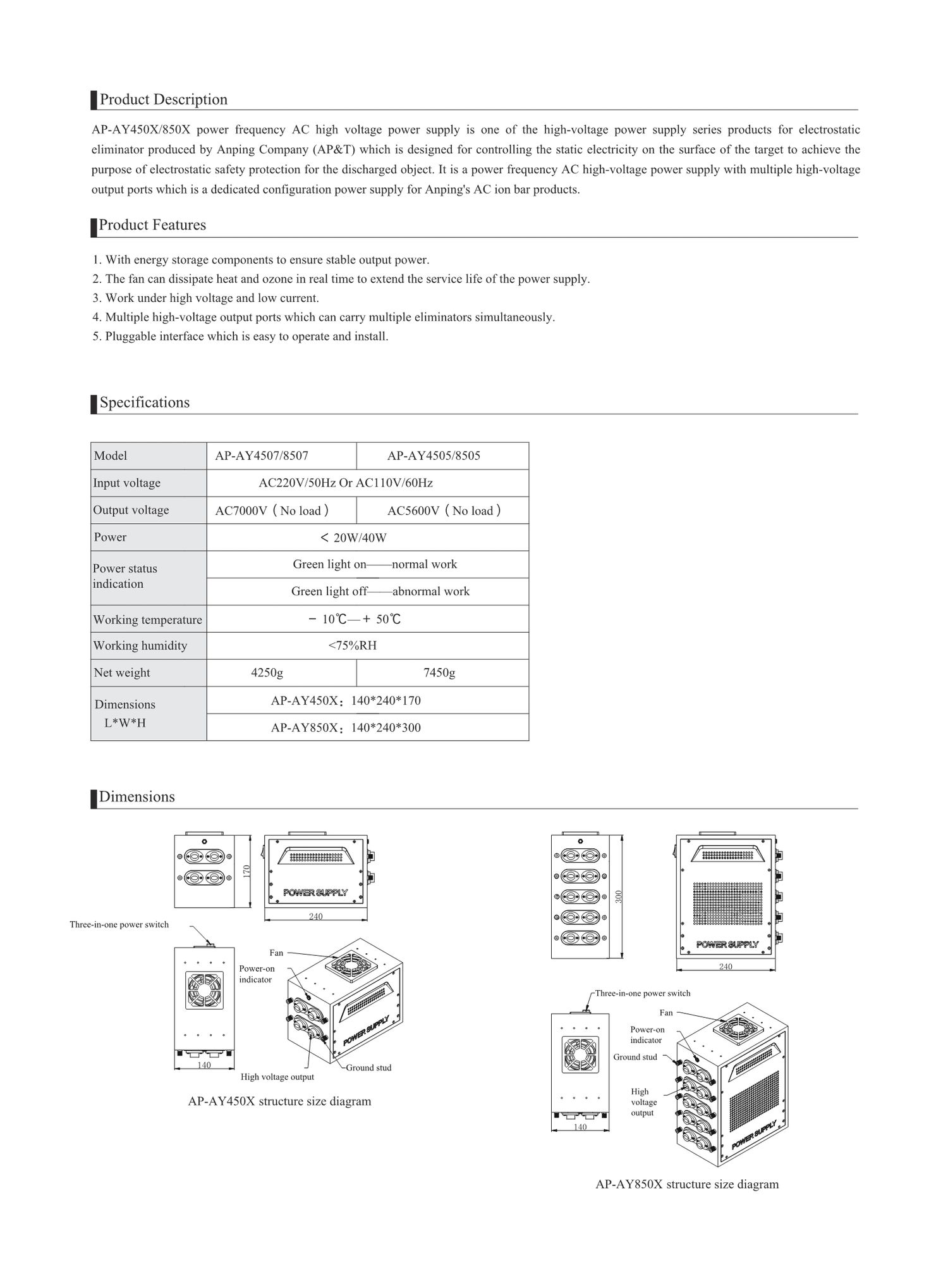 AP&T AP-AY8505 ແຮງດັນສູງຕ້ານການໄຫຼ electrostatic eliminator ການສະຫນອງພະລັງງານ | EMIN.COM.LA