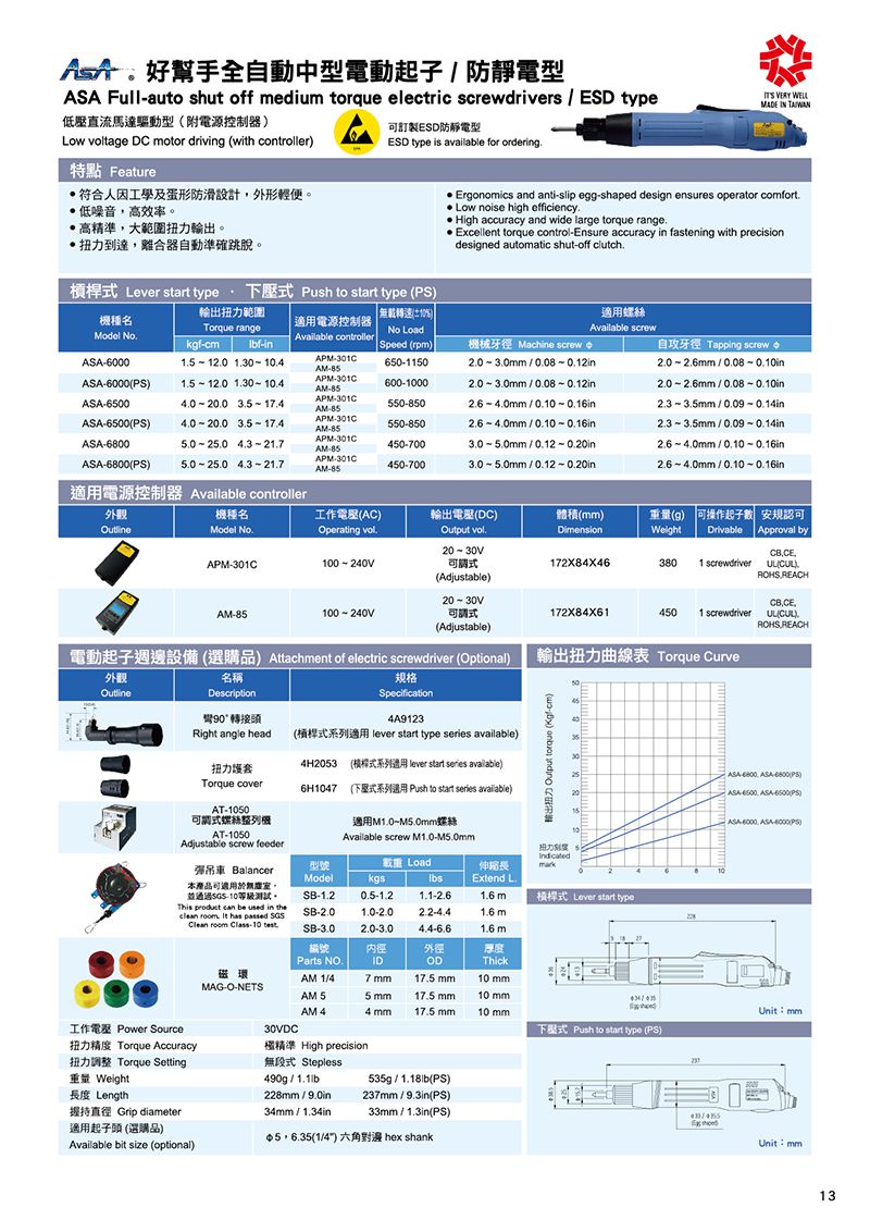 ASA ASA-6800PS ອັດໂນມັດປິດສະກູດໄຟຟ້າເຕັມອັດໂນມັດ - Push to Start Type (ຕົວເຄື່ອງເທົ່ານັ້ນ) (5.0-25.0kgf-cm, 1/4", Push to Start) | EMIN.COM.LA