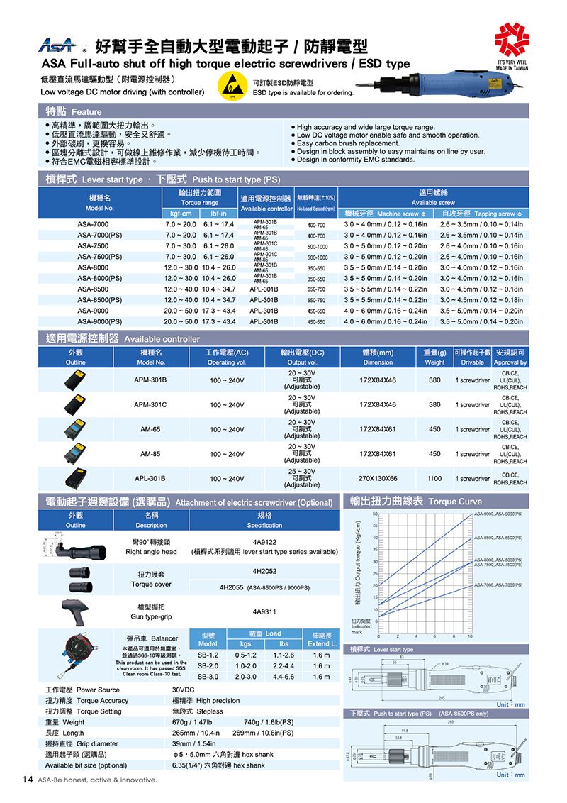 ASA ASA-9000PS screwdriver ໄຟຟ້າປິດອັດຕະໂນມັດເຕັມ - Push to Start Type (Set) (20.0-50.0kgf-cm, 1/4", Push to Start) | EMIN.COM.LA