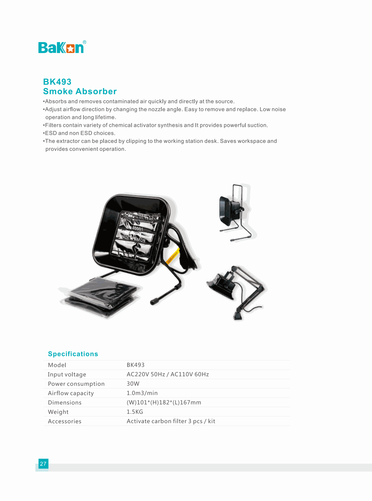 Bakon BK493 ເຄື່ອງດູດຄວັນ (30W) | EMIN.COM.LA