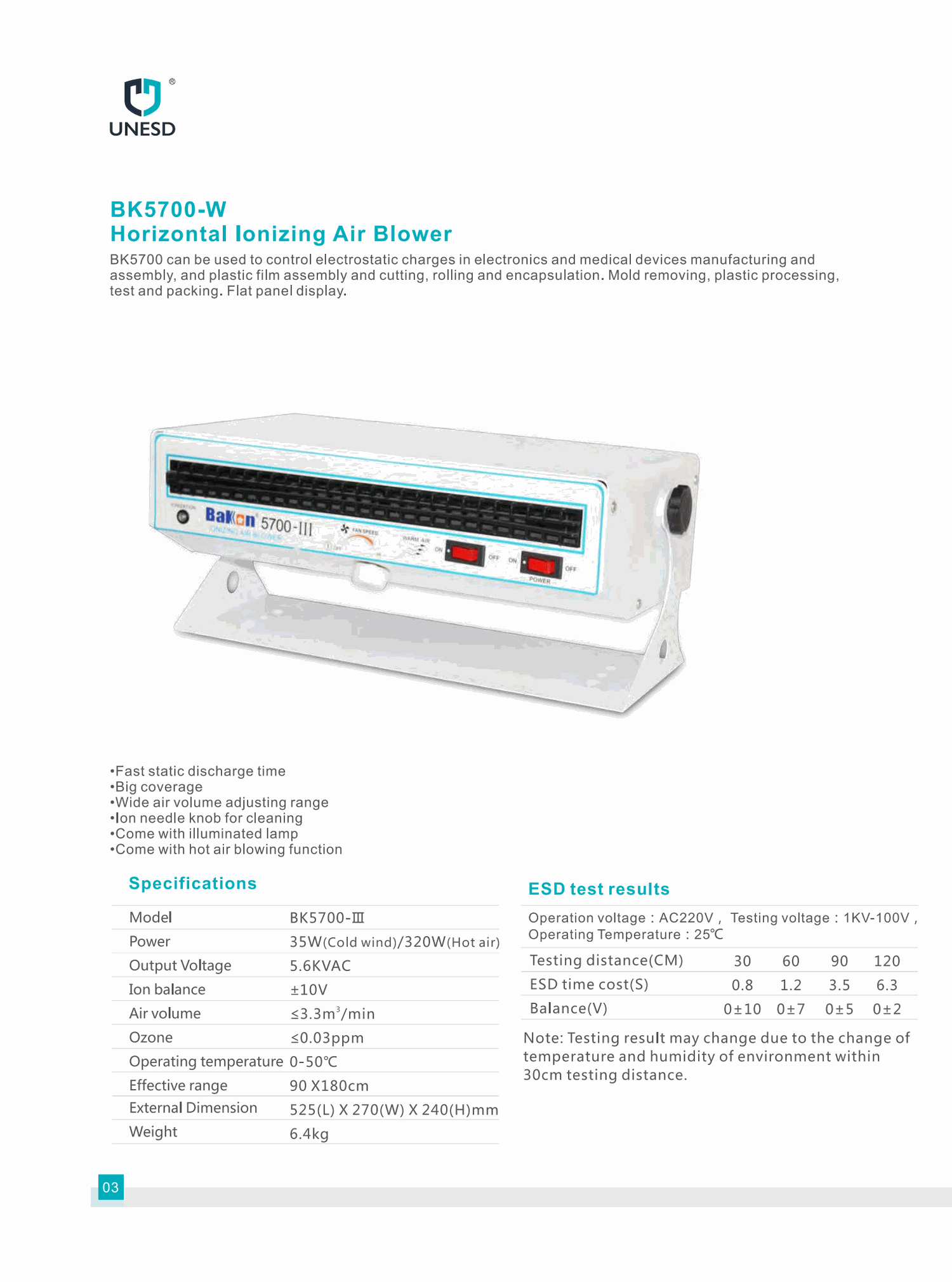 Bakon BK5700-III ເຄື່ອງເປົ່າລົມ Ionizing ຕາມແນວນອນ (35W/320W) | EMIN.COM.LA