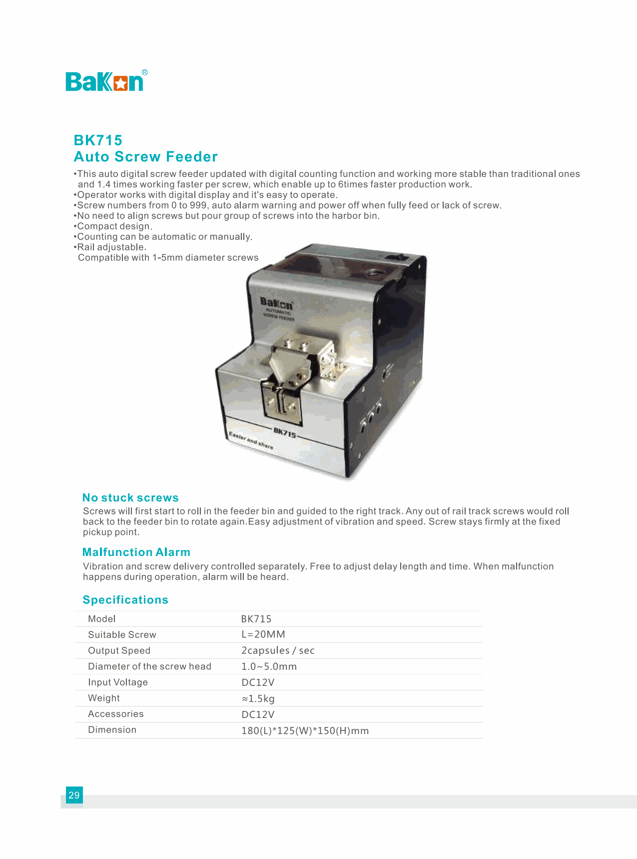 Bakon BK715 ອັດໂນມັດ Screw Feeder (1.0-5.0mm) | EMIN.COM.LA