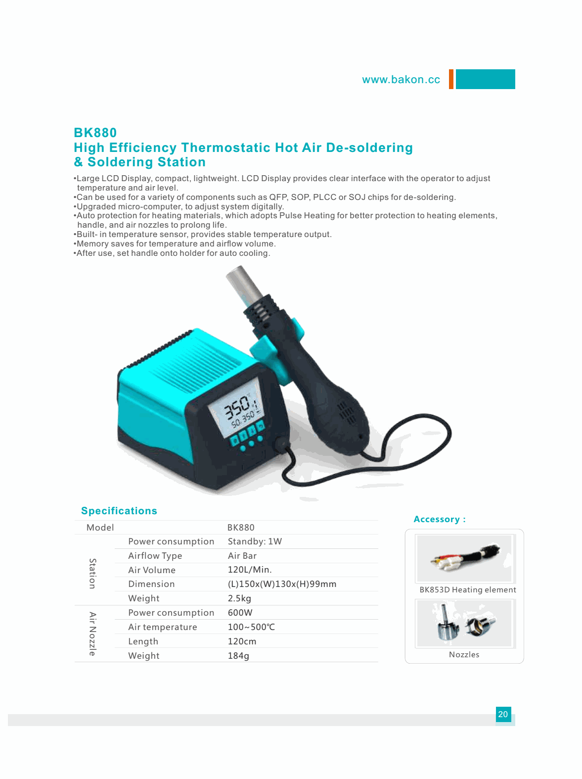 Bakon BK880 ປະສິດທິພາບສູງ Thermostatic Hot Air De-soldering & Soldering Station (600W) | EMIN.COM.LA