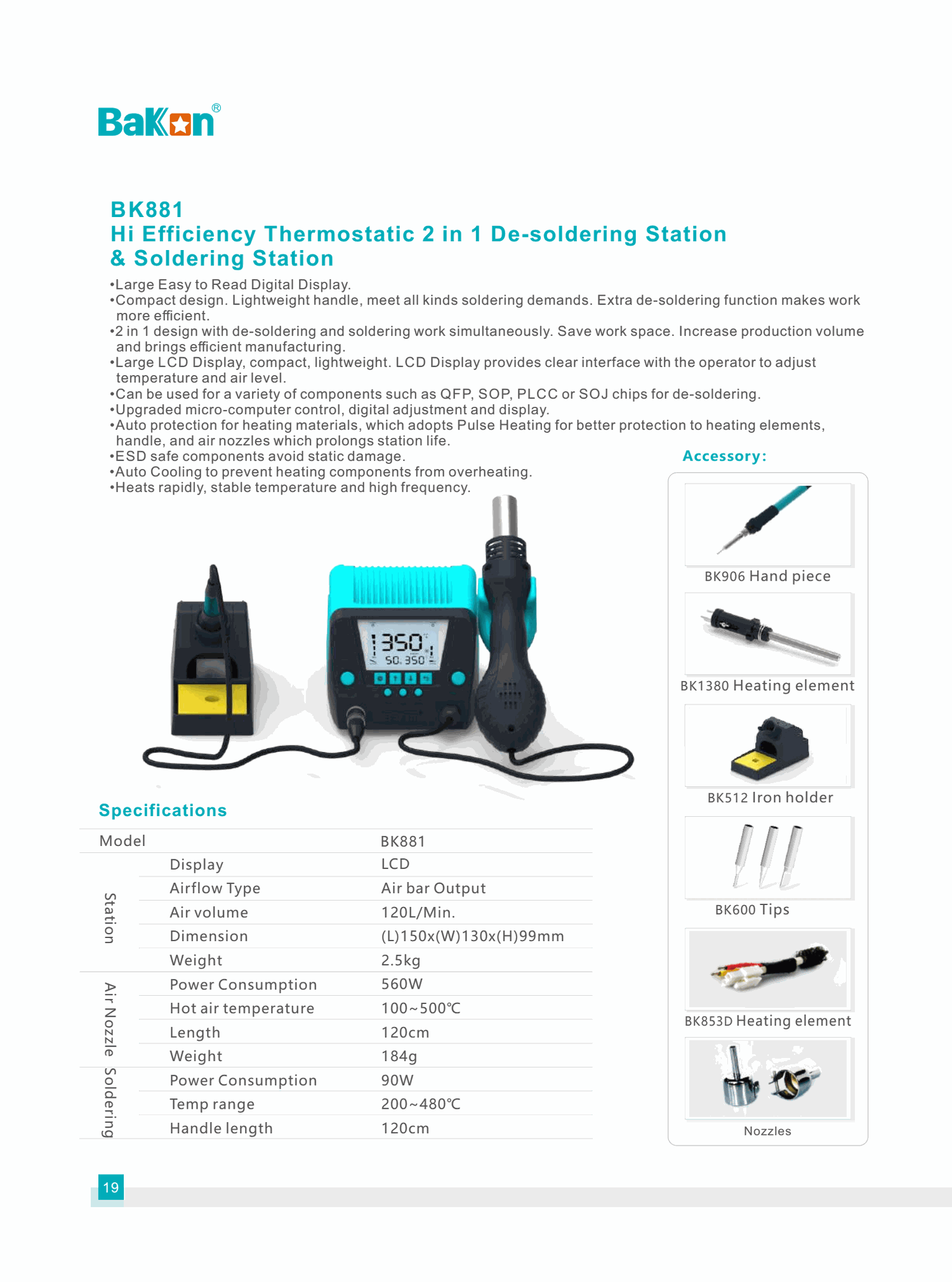 Bakon BK881 Hi Efficiency Thermostatic 2 in 1 De- soldering Station & Soldering Station (560W) | EMIN.COM.LA