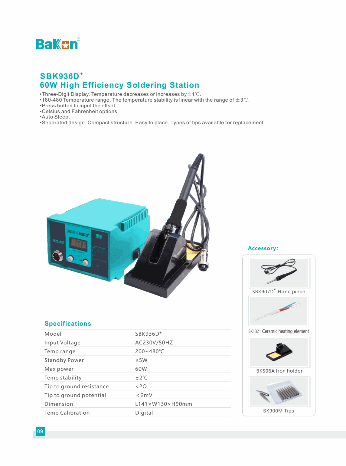 Bakon SBK936D+ ສະຖານີ Soldering ປະສິດທິພາບສູງ (60W) | EMIN.COM.LA