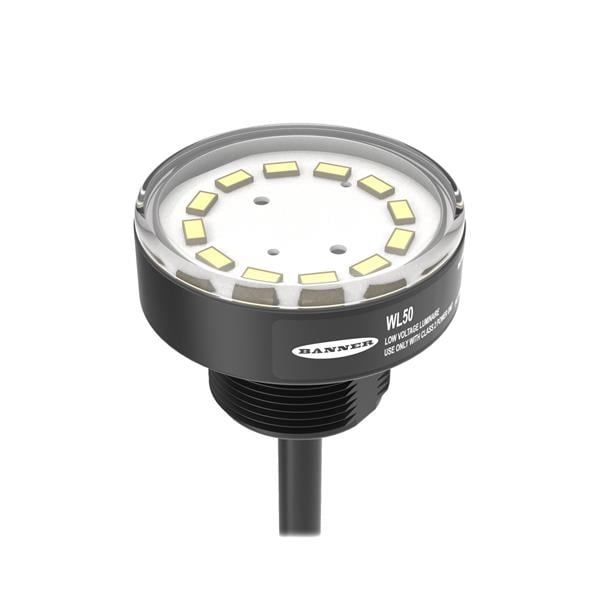 Banner Engineering WL50-3WQP ໄຟສ້ອງ LED ສໍາລັບງານ WL50-3 ໄຟສ້ອງງານ, PWM ຄວບຄຸມຄວາມສະຫງວນ; ແຮງແສງ: 12-30 V dc; IP65/67/69K; ສີ: ຂາວແສງວັນ: 5K; ຖົງສາຍ M30 ທີ່ມີເກືອບ, 150 mm (6 in) ສາຍ M12 PVC Pigtail QD