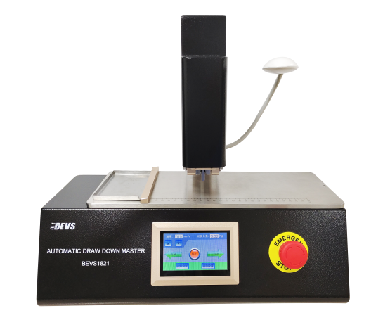 The BEVS 1821 Automatic Drawdown Master is a dual-purpose machine that integrates grind gauge scraper drawdown and film applicators drwadown. Benefit form its constant pressure and speed, the drawdown is of high repeatability which eliminates human error. When doing a grind gauge scraper drawdown, place the grind gauge and scraper, click the button to start the drawdown. Film applicators drwadown is the same way to use. The machine is easy to use and clean which brings users great convenience.