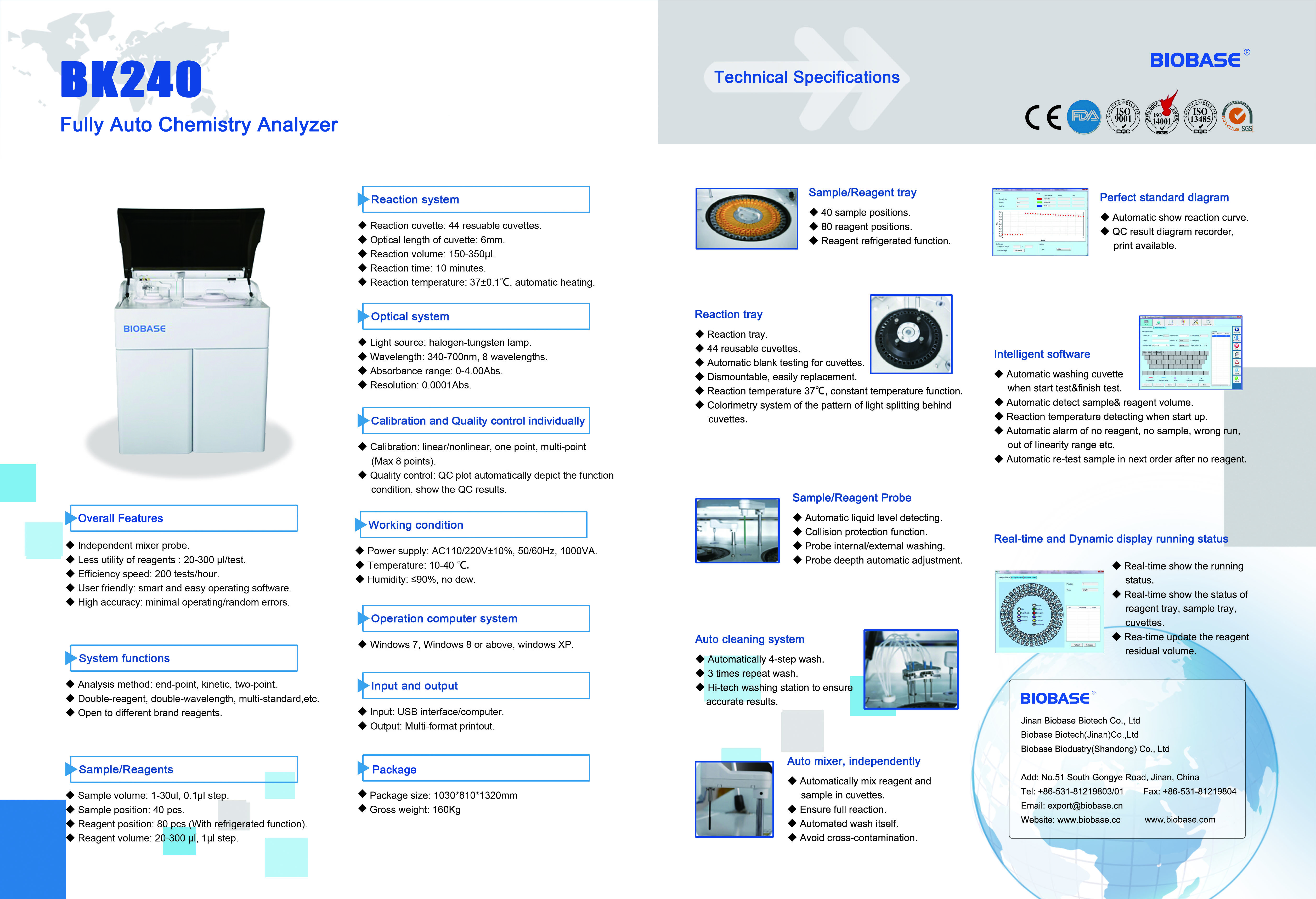 Sample& Reagent Probe:Automatic liquid level detecting,Collision protection function,Probe internal/external washing,Probe deepth automatic adjustment
