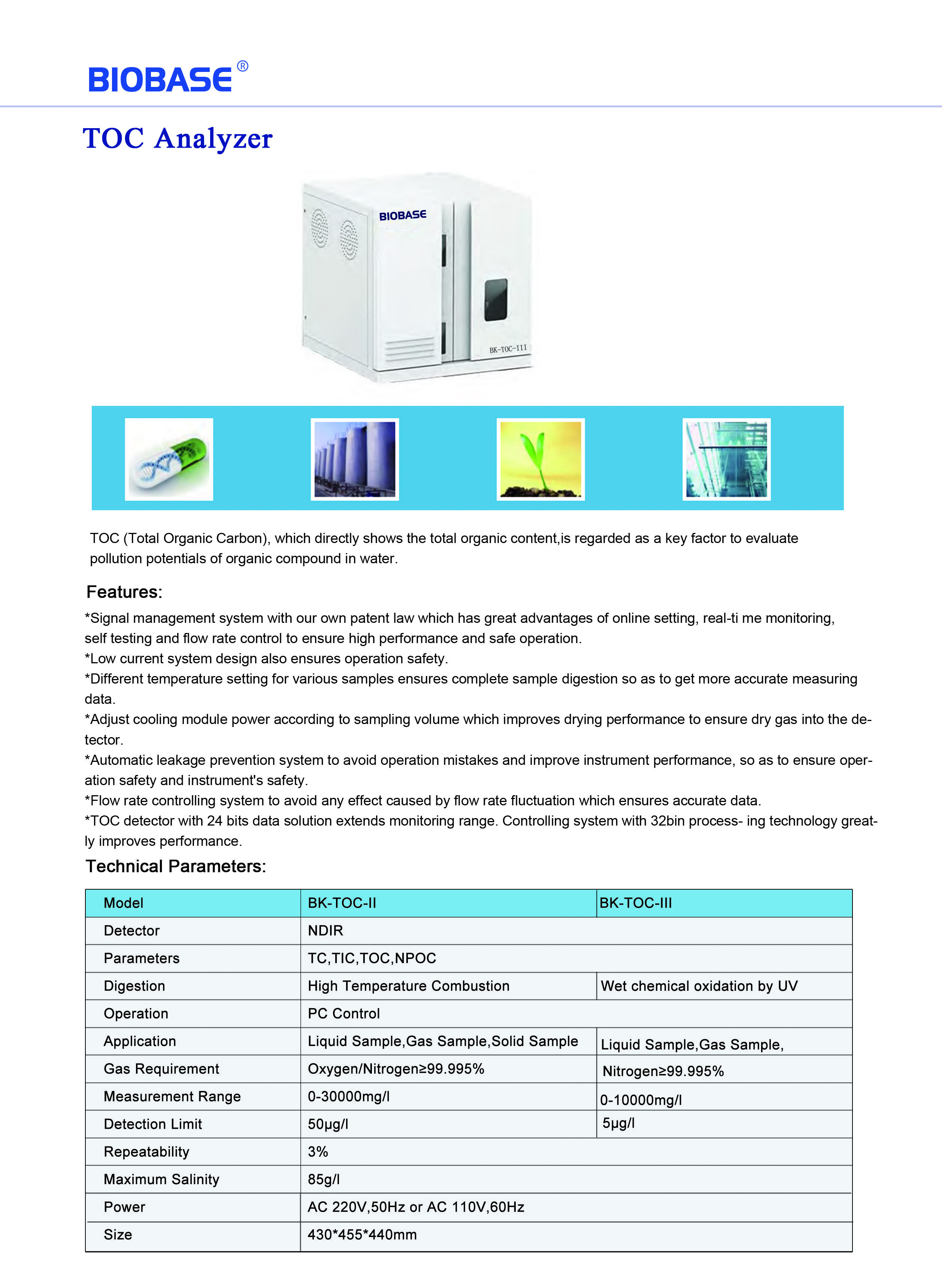 -TOC detector with 24 bits data solution . Controlling system with 32bin process