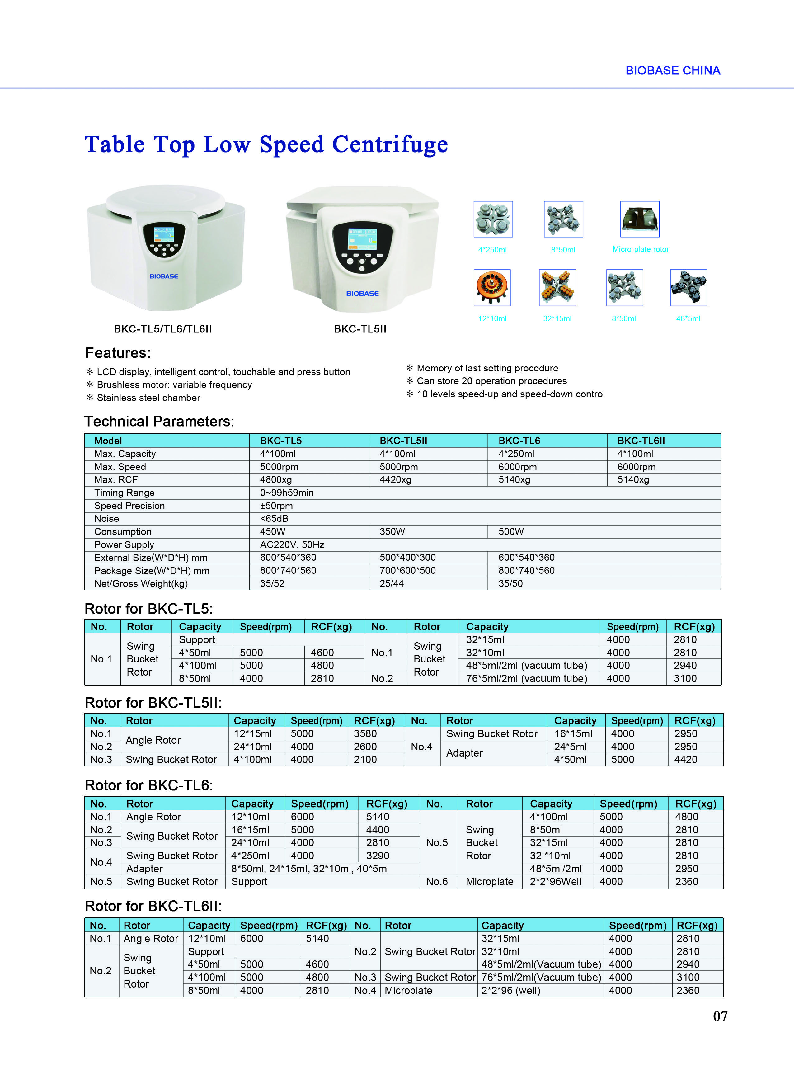 No. | Rotor | Capacity | Speed (rpm) | RCF(xg) |
