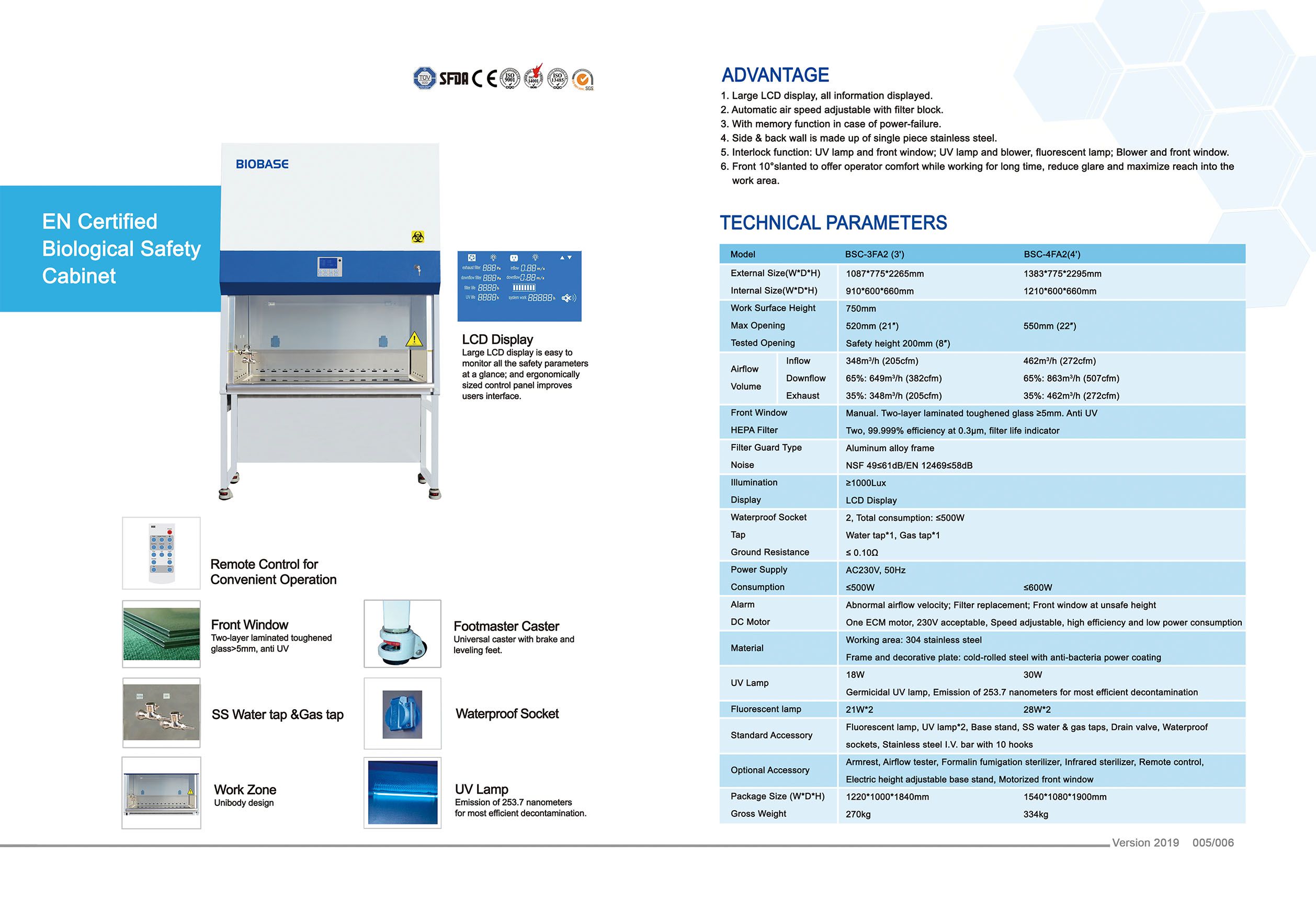 - Interlock function: UV lamp and front window; UV lamp and blower, fluorescent lamp; Blower and front window.