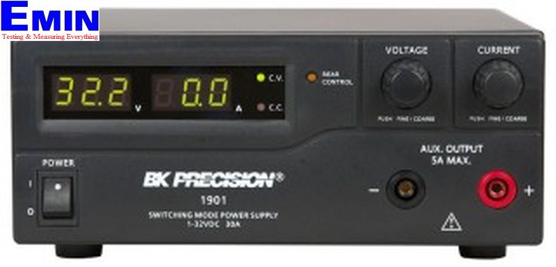 Models 1900, 1901 and 1902 are are laboratory grade switching mode DC power supply with high current output in a small form factor and lightweight package. The supplies provide various configurations of high output voltage or high output current and make setting voltage and current levels fast and precise through its dual action, coarse/fine rotary encoder control. In addition to constant voltage (CV) and constant current (CC) modes, the high efficiency DC power supplies offer a unique solution with its preset and remote control modes. Save up to three different presets of voltage and current values for quick recall. The remote control function allows the output power, voltage, and current to be adjusted without touching the front panel of the power supply. A remote sensing terminal is also available for use to compensate for long output line losses. These features make the 1900 Series suitable for a wide range of applications including production testing, telecommunications, R&D, service, and university labs.