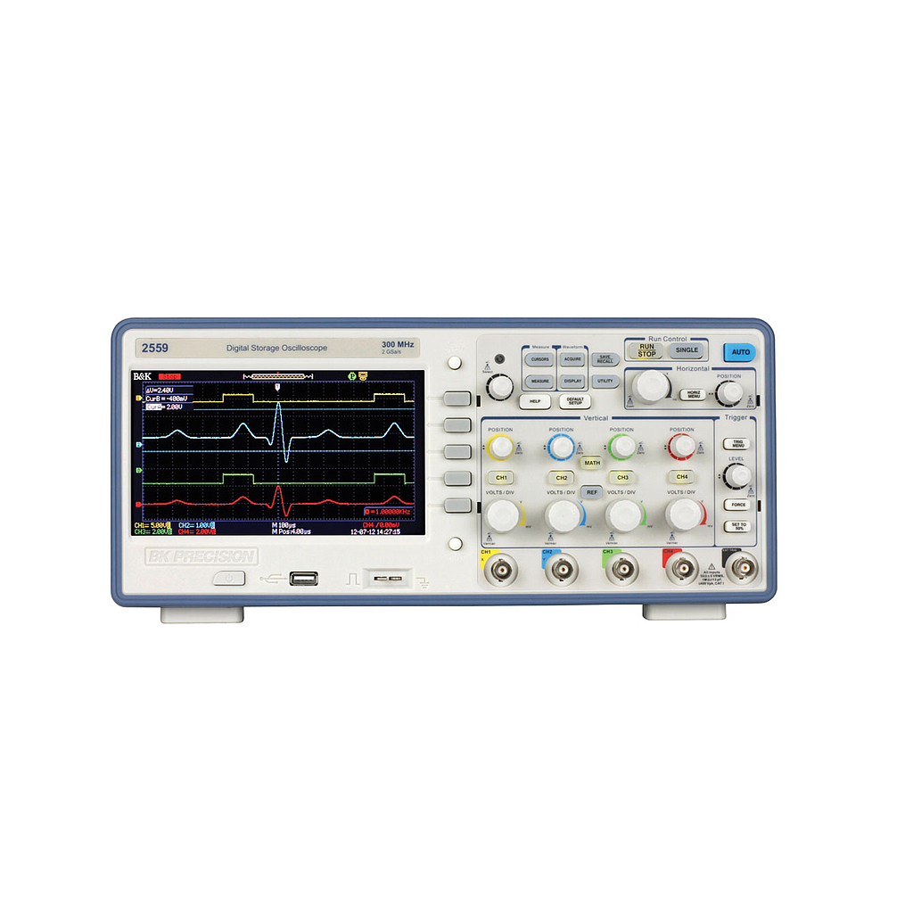 Supplied Accessories: User manual, passive probes (one per channel), power cord, certificate of calibration, USB (Type A to B) communication cable