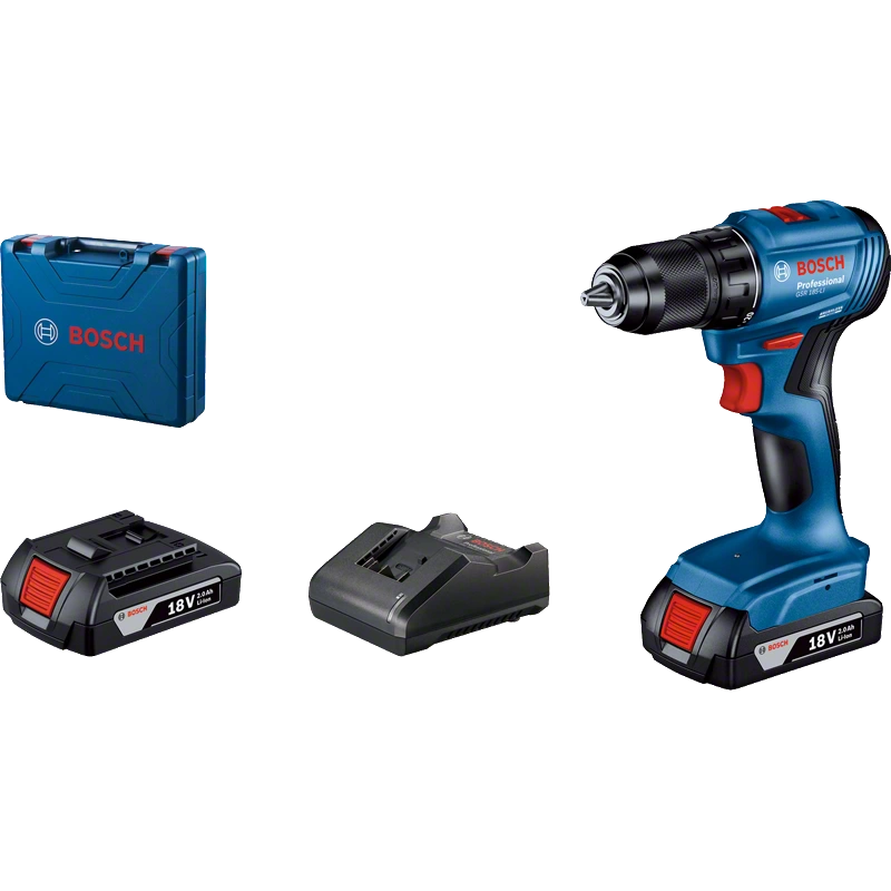 BOSCH GSR 185-LI Cordless Drill / ຄົນຂັບ (2 pin 2.0Ah, 1 sạc, valy, bộ phụ kiện 23 món) | EMIN.COM.LA
