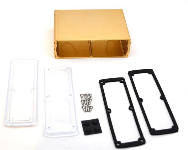 Bud Industries EXN-23364-GDP ກະບອງປິດ PCB ອະລູມິເນຍອອກແບບດີດທອງພ້ອມກັບຝາພລາສຕິກ (2.4 X 7 X 5.1 ນິ້ວ) | EMIN.COM.LA