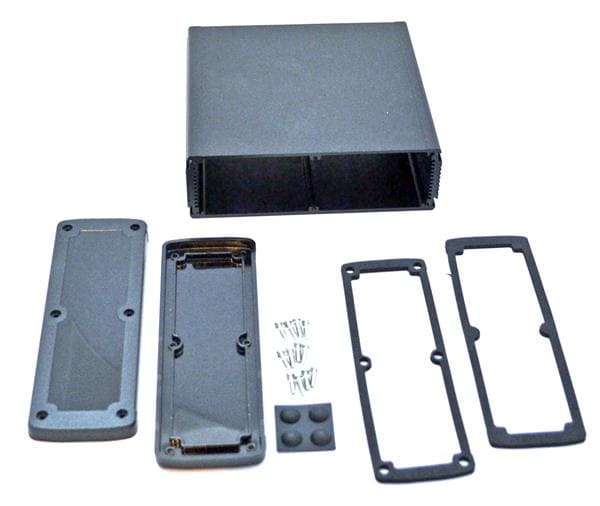 Bud Industries EXN-23365-BKP ກະບອງປະກອບ PCB ອະລູມິເນຍອອກແບບດີດດຽວ ສີດຳມີຝາພລາສຕິກ (2.4 X 7 X 6.7 ນິດ) | EMIN.COM.LA