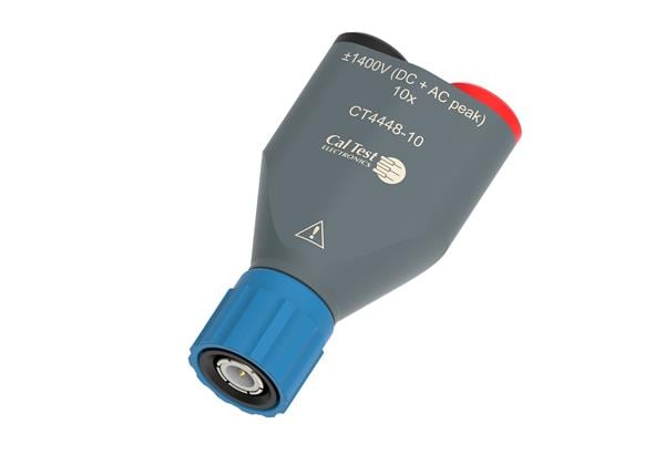 Cal Test Electronics CT4448-10 ຕົວຫຼຸດສະບັບມີການເຊື່ອມຕໍ່ BNC ໄປຫາ 4mm Banana Jack Attenuator, 1000V CAT II, 1400V, 10x