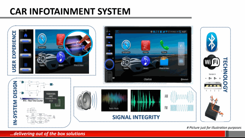 Car infotainment system gives user a wider scope of entertainment service, provide important real time information and much better experience while on the road.