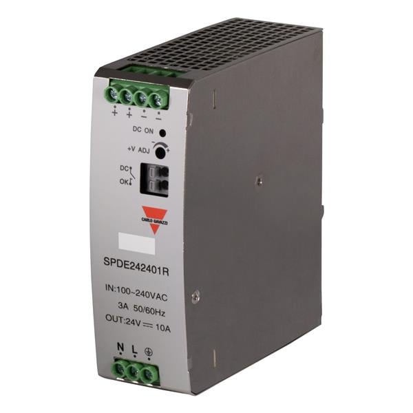 Carlo Gavazzi SPDE242401R ເຊັດຊິ້ງພາວເພີ້ມພະລັງ Switching Power Supply, AC/DC, 240W, Single Phase, 24V, Screw Terminals, IP20, DC OK relay, PFC, DIN-Rail Mounting, Over-load, Over-voltage, Short-circuit and Over-temperature Protections, metal housing