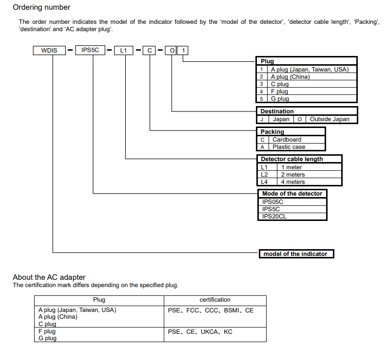 Accessories, Attachments: Detector (Refer below), Detector cable, Joint OW-025, Cube (H20×W20×D20), SC-1 with the screw hole of M1, M1.2, M1.4, M2 and M3, AC adaptor, Rubber foots