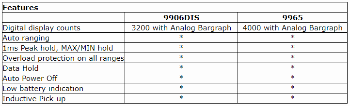Test leads, type K temperature Probe, Inductive pick-up, 9V battery and gift box with carrying case.