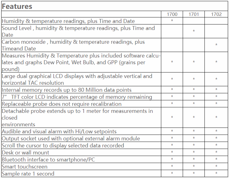 CEM DT-1702 ອຸນຫະພູມຫ້ອງທົດລອງ, ຄວາມຊຸ່ມຊື່ນ, CO Datalogger (100%RH, -28~60°C, 0~1000PPM) | EMIN.COM.LA