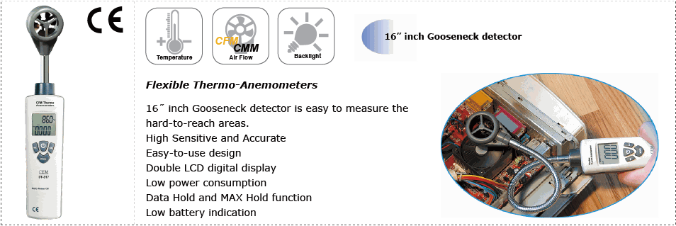 CEM DT-317B Thermo-Anemometer (1~30m/s, -10~60ºC, CFM: 0-999900) | EMIN.COM.LA