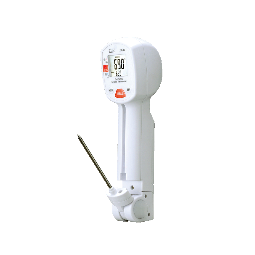 CEM IR-97 ເຄື່ອງວັດອຸນຫະພູມອິນຟາເຣດແບບບໍ່ຕິດຕໍ່ຄວາມປອດໄພດ້ານອາຫານ (-40ºC~280ºC/-40ºF~536ºF) | EMIN.COM.LA