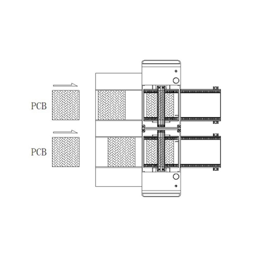 Fixed conveyor mode: 1 and 4 rail fixed,2 and 3 adjustable