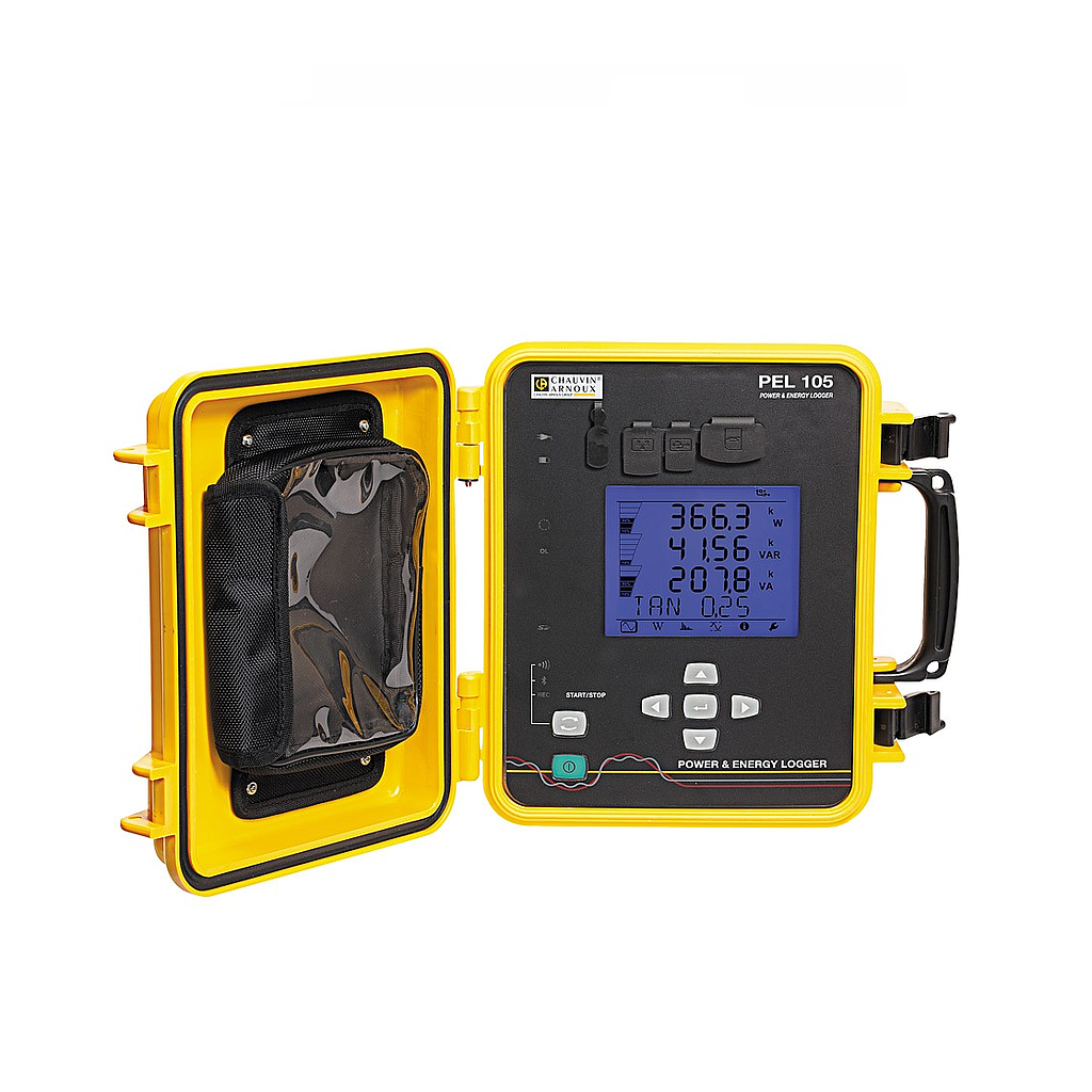 It is ideal for outdoor installation directly on an electricity pole. With its 1,000 V CAT IV safety rating, it can be used for measurements on all LV networks, including measurements of the neutral-earth voltage and the neutral current. This stand-alone instrument is equipped with a selfpowering system via its voltage inputs up to 1,000 V. The PEL 105 offers 5 voltage inputs and 4 current inputs. Compatible with a large number of current sensors to make it easier to use, it also recognizes the sensors