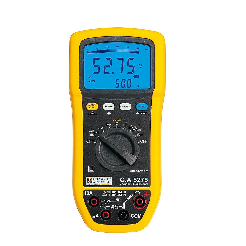 The C.A 5275 multimeter is equipped with a double 6,000-count backlit display and a 61+2-segment bargraph with remanent effect.