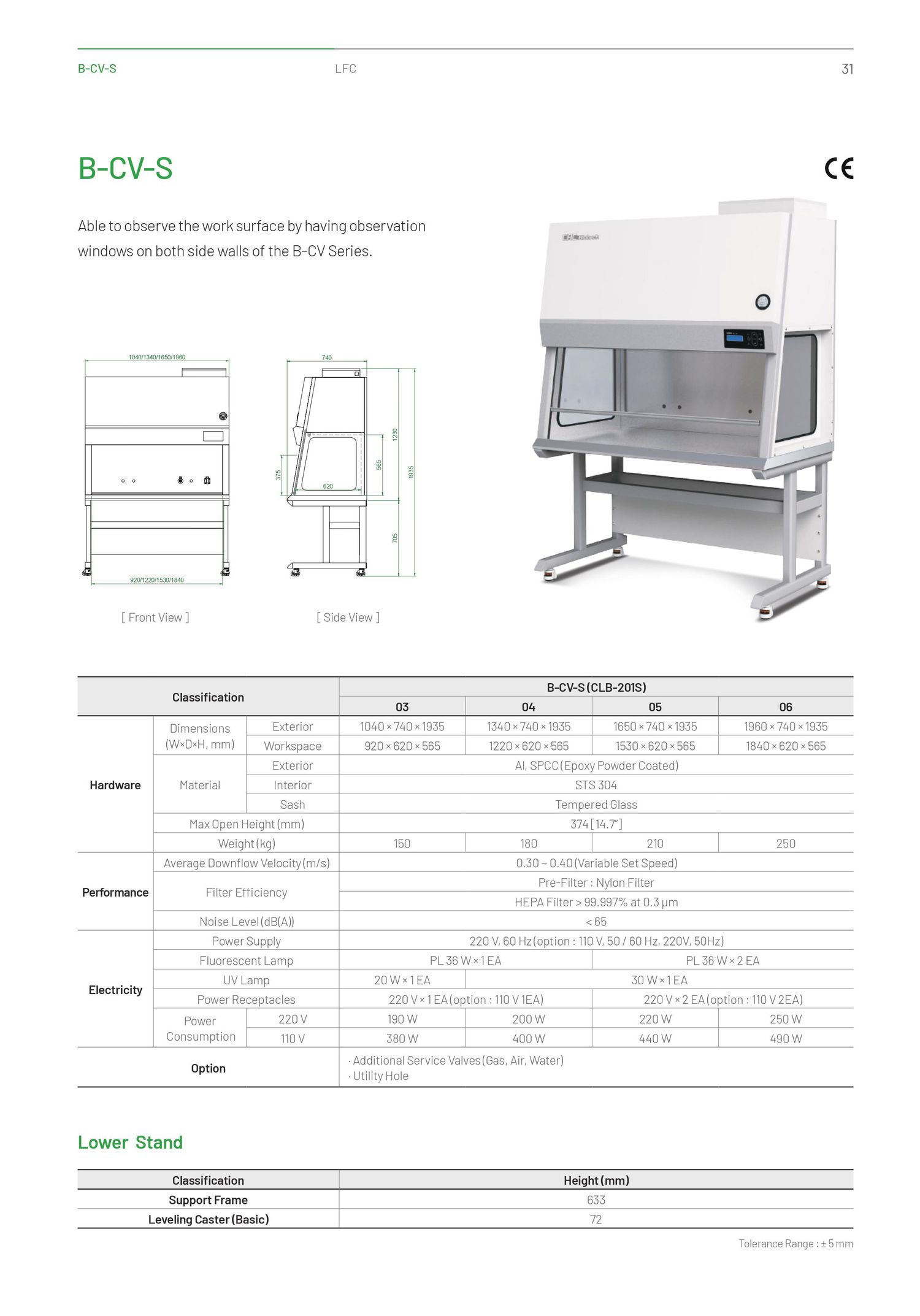 - Average Downflow Velocity(m/s): 0.30 ~ 0.40 (Variable Set Speed)
