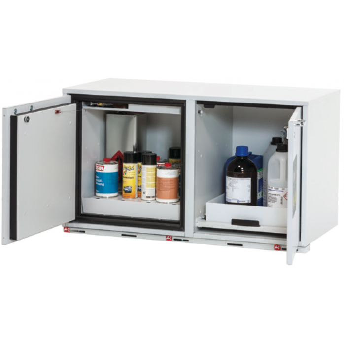 The expandable interior finish between the door and the frame swells in response to heat in the event of a fire, sealing the gap between the door and the frame and blocking the entry of heat into the cabinet. It keeps the temperature inside constant.