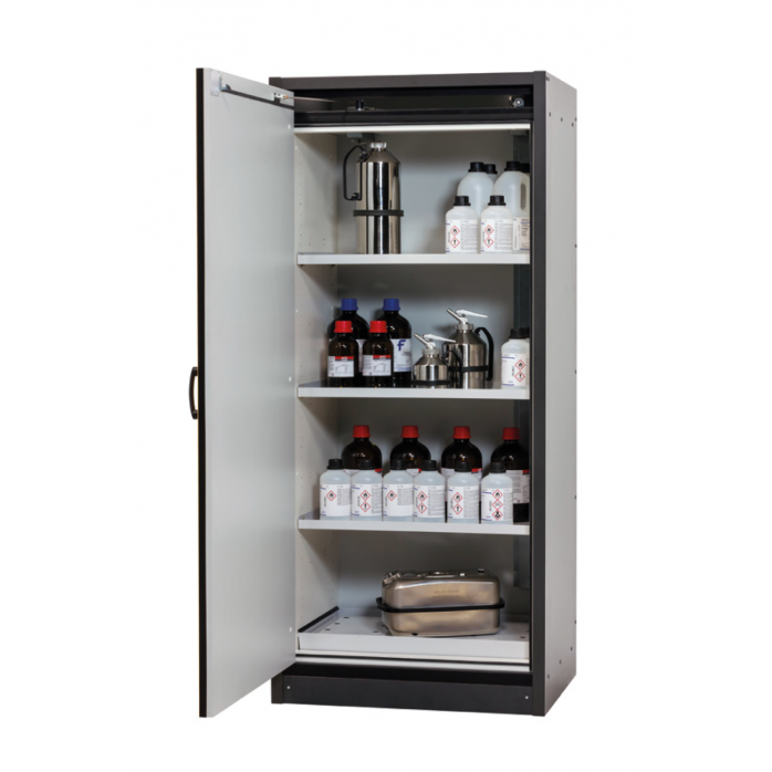 The large-capacity storage cabinet offers three basic shelves and can store about 95 liters of water for three double-door type shelves and 190 liters for six drawers. (3 base shelves and 1 base spill tray provided)