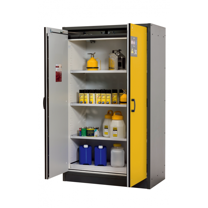 The expandable interior finish between the door and the frame swells in response to heat in the event of a fire, sealing the gap between the door and the frame and blocking the entry of heat into the cabinet. It keeps the temperature inside constant.