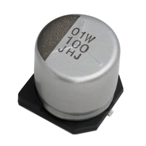 Chemi-Con HHXJ500ARA820MHA0G ອະລູມິນຽມ ໂປລິເມີ ຮິບຣິດ ຄາປາຊິເຕີ 50VDC 82uF Tol 20% 8x10mm AEC-Q200 | EMIN.COM.LA