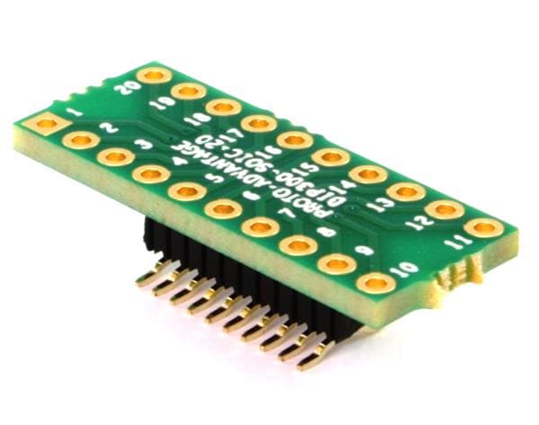 Chip Quik DIP300-SOIC-20N ອາເດັດເຕີ DIP Sockets DIP-20 (ຄວາມກວ້າງ 0.3", ຊ່ອງຫຼີ້ນ 0.1") ເປັນ SOIC-20 Narrow (ຊ່ອງຫຼີ້ນ 1.27mm, ຂະໜາດຕົວ 150/200 mil)