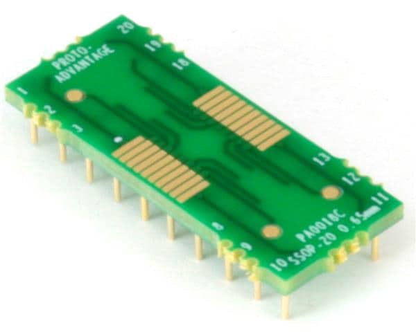 Chip Quik PA0018C ອາແດບເຕີ SSOP-20 ເປັນ DIP-20 SMT Adapter (0.65 mm pitch) Compact Series | EMIN.COM.LA