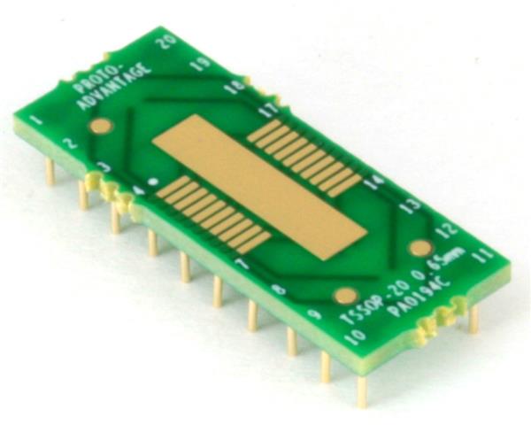 Chip Quik PA0194C ອາເດັບເຕີ TSSOP-20-Exp-Pad ເປັນ DIP-20 SMT Adapter (0.65 mm pitch) ຊຸດຂະຫນາດກະທັບ | EMIN.COM.LA