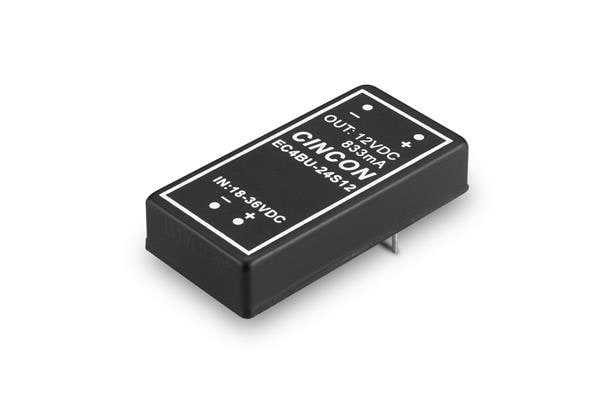 Cincon EC4BU-12D12 ຕົວແປ DC-DC ທີ່ຖືກແຍກອອກ, 10 ວັດ, ຊ່ວງຂາວເຂົ້າ 2:1, ເຂົ້າ 9-18VDC, ອອກ +/-12VDC, ການແຍກອອກ 1.5KVDC ຂັ້ນຕ່ຳ, ທອງຄອບດສີດໍາມີພື້ນຖານບໍ່ນຳໄຟ, ທຣູ-ໂຮນ, 50.8x25.4x10.2mm