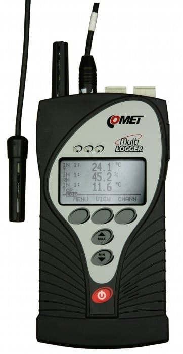 Channels: internal Atmospheric pressure sensor, 2x external temperature probe or connectable temperature+humidity probe, 2x binary, counter, voltage and current input