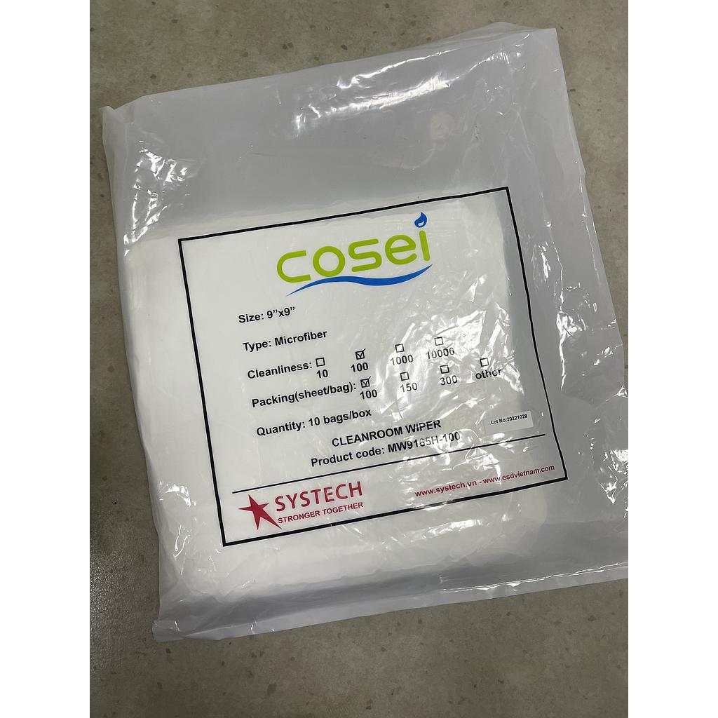 COSEI MW9165H-100 ເຊັດຫ້ອງສະອາດ (microfiber, 9*9", white, 100 sheets/bag, Class: 100) | EMIN.COM.LA
