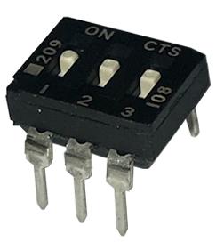 CTS Electronic Components 209-3LPSF ສະລັບ DIP ຜ່ານຮູ, DIP SWITCH ທອງ, 3-ຂາ, ຕົວກະທົບຮູບແບບຕ່ຳ, ການປິດທ້າຍ, ປະກອບໃນທູບ | EMIN.COM.LA