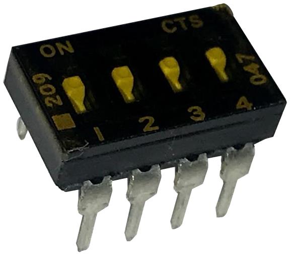 CTS Electronic Components 209-4LPSTD ສະວິດ DIP ຜ່ານຮູ, ສະວິດ DIP ທອງ, 4-ຂາ, ຕົວກະທົບຮູບແບບຕ່ຳ, ການປິດດ້ານລຸ່ມ, ການປິດດ້ານດ້ານດ້ານ, ແບບຮູບສະເພາະຂອງຂາຕົວສະຫຼາດ, ກະປຸກທູບ