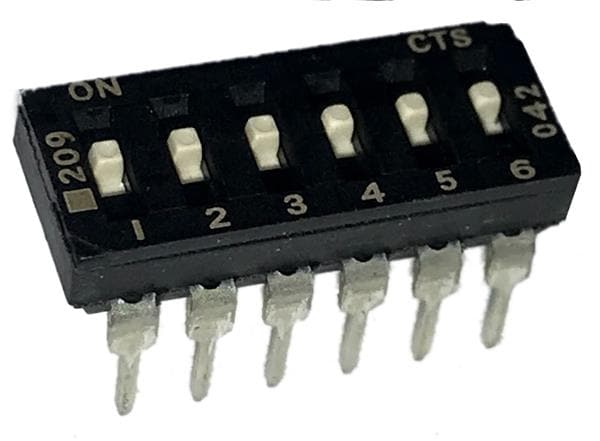 CTS Electronic Components 209-6LPSD ສະຫນັບ DIP ຜ່ານຮູ, DIP SWITCH ທອງ, 6-ຂາ, ຕົວກະທົບຮູບແບບຕ່ຳ, ການປິດທ້າຍ, ແບບຂາສົດຕົວຕົວ, ບ່ອງບັນຈຸ